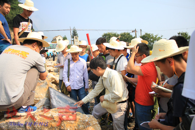在野外实习现场,教师为学生解答工程地质相关问题
