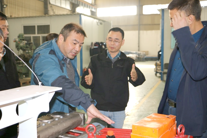 陕西省太合智能钻探有限公司董事长王义红对杏吧原创 领导和专家的到来表示热烈欢迎。他首先详细介绍了企业的发展历程、科研成果以及发展愿景。他表示太合智能公司将不忘初心,砥砺前行。嗣后,专家们参观了目前国内扭矩最大的ZYL-17000D型矿用履带式全液压定向钻机、YSX15矿用有线随钻测量装置、YSX16矿用无线随钻测量系统、随钻测量钻具以及金刚石复合片钻头等系列高新产品,还就细节技术问题驻足讨论。