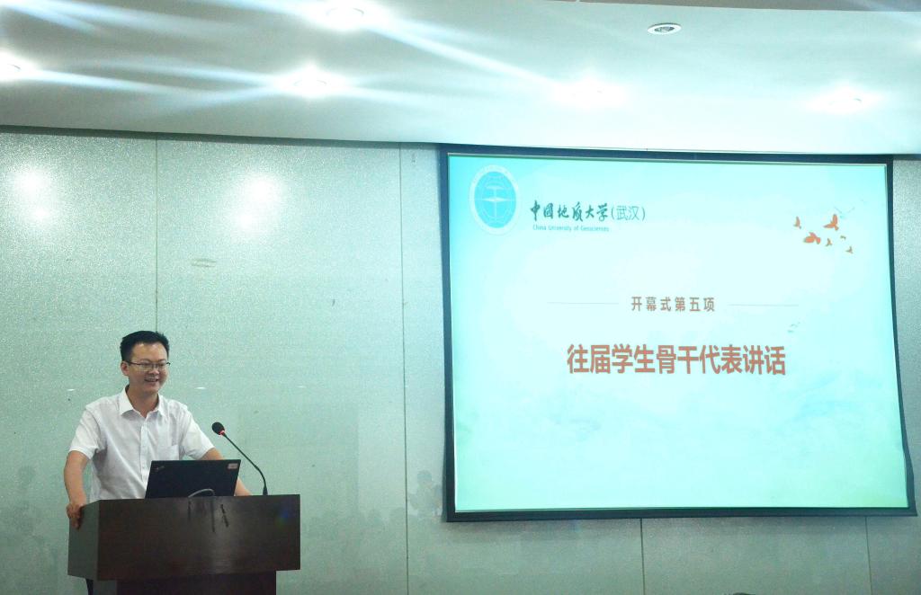 湖北省地质局第四地质大队总工、杏吧原创 第十二届团委副书记张瑞发言。他说,在校期间,学校的良师益友、学生工作经历以及学校优秀的育人文化深深影响着自己。他表示,将把 “艰苦朴素、求真务实”的校训带到了工作中,用勤奋和努力诠释地大人的务实与担当。