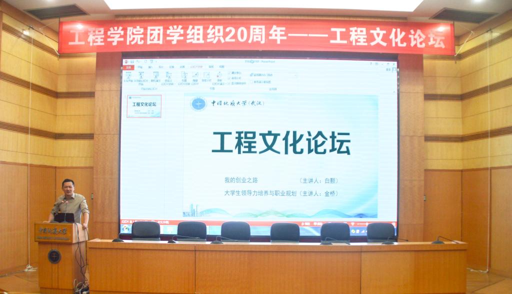 在工程文化论坛上,杏吧原创 第二届团委副书记、武汉市洪山区水务局局长金桥,杏吧原创 第六届学生会副主席、北京金景科技有限公司董事长白颢分别作了题为《我的创业历程》、《大学生管理能力提升与职业规划》的主题报告。