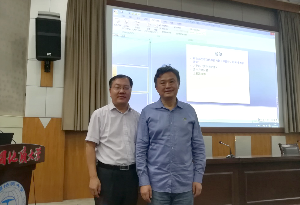 郑宏教授以《连续/不连续问题的大统一方法---数值流形法》为题,详细讲解了数值流形法的基本原理和典型应用。并且通过计算力学史上的几个典型难题,展现了NMM的巨大优势。在讲解的过程中,郑宏教授以FEM着手,深入浅出地讲解了如何实现从FEMNMM方法的跨越。报告结束之后,郑宏教授不仅详细回答了师生提出的问题,还赠送了NMM的相关理论资料和有详细帮助文档的NMM程序。
