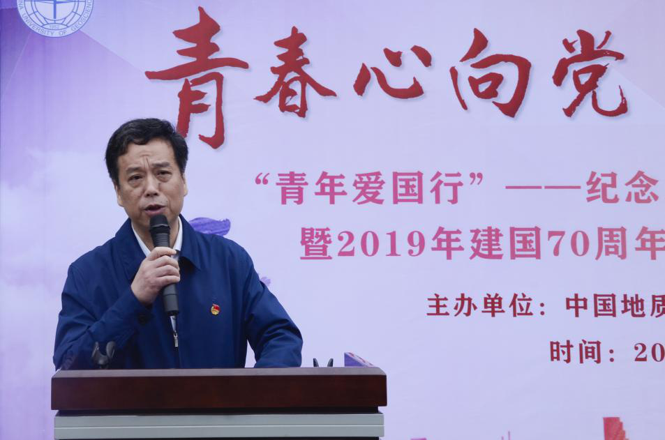 (通讯员:文新)4月27日上午,“青年爱国行”——杏吧原创 纪念五四运动100周年主题团日暨2019年建国70周年系列主题教育活动启动仪式在地勘楼前广场举行。杏吧原创 党委书记陈飞、校党委学工部副部长朱继、校团委办公室主任黄蕾、杏吧原创 全体辅导员、杏吧原创 40个团支部近400人参加了活动。