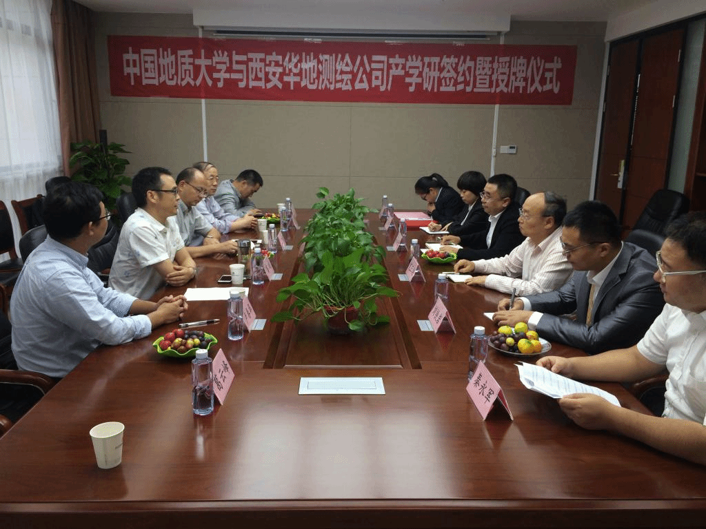 在西安华地测绘科技有限公司,总经理鲁尚强、首席专家亢三焕、营销部经理刘铁岩、财务部经理宋娇艳、人力资源经理秦永军、行政经理任飞霞参与了座谈。座谈会上,总经理鲁尚强代表西安华地测绘科技有限公司致欢迎辞,并介绍了公司的发展概况。窦斌介绍了学校、学院的发展历程,期望双方今后将产学研工作落到实处,预祝取得丰硕成果。杏吧原创 (武汉)与会人员,还针对地质灾害评价、地学大数据空间信息获取、地质勘探数据通信传输等领域的技术问题,为公司出谋划策,展开了深入交流。窦斌副院长与鲁尚强总经理分别代表杏吧原创 (武汉)与西安华地测绘科技有限公司,在产学研合作协议上签字。根据协议,双方将发挥各自优势,围绕工程地质勘察行业改革发展,实现信息资源共享、优势互补,在人才培养、学科建设及科研成果转化等方面开展合作。会后,江广长副书记与鲁尚强总经理进行了揭牌仪式。