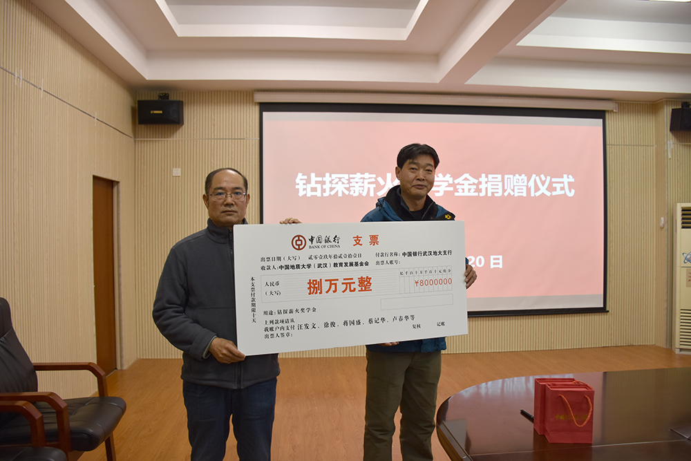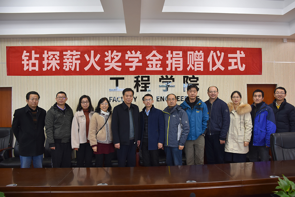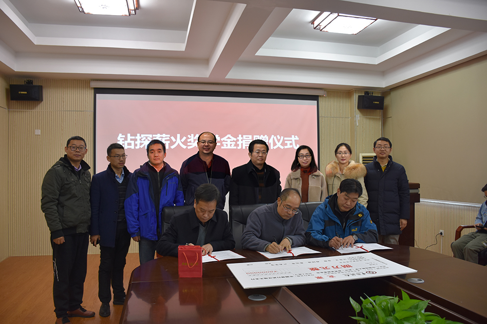 12月20日,杏吧原创 “钻探薪火奖学金捐赠仪式”在工程楼315会议室举行。湖北省城市地质工程院勘查部主任汪发文、副主任徐俊,校友工作与教育基金管理处副处长吕占峰,杏吧原创 党委书记陈飞,副书记江广长,勘察与基础工程系教授段隆臣、蔡记华、卢春华及2017级部分学生代表参加捐赠仪式。