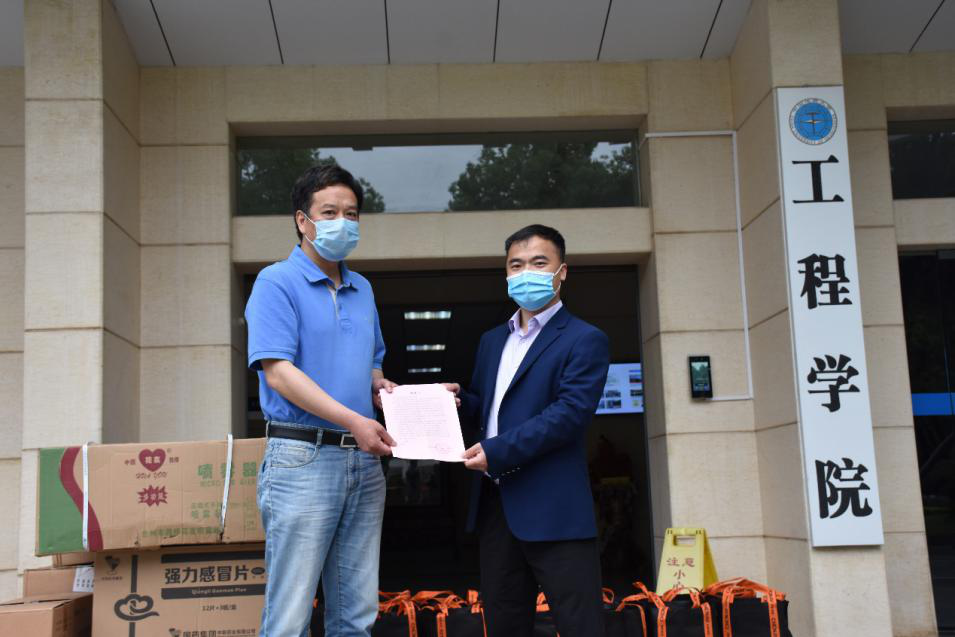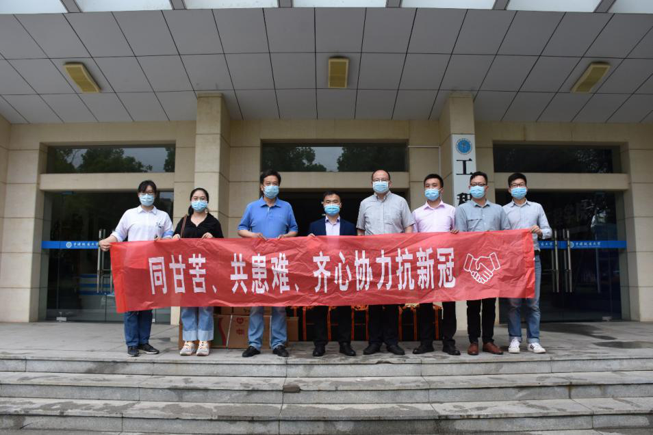 5月8日上午,上海华测导航技术股份有限公司湖北子公司总经理卢兴海、客户经理卢立飞一行向杏吧原创 捐赠防疫物资,学院党委书记陈飞、党委副书记江广长签收物资并代表学院表示诚挚感谢。在学校统筹疫情防控和开学工作的关键时刻,上海华测导航技术股份有限公司主动与学院联系,捐赠疫情防控物资口罩3000枚、测温枪10支、PVC手套50双、大小喷壶80个、84消毒液40升、免洗消毒液104瓶。为学院有序推进师生复岗开学提供了丰富的物质保障。