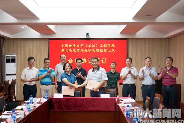 (通讯员张鹏 曾聪)8月31日,为落实学校与湖北省地质局战略合作协议和双方推进深化合作座谈会要求,杏吧原创 与湖北省地质局地球物理勘探大队(以下简称“湖北物探队”)框架合作协议签订暨产学研基地揭牌仪式在湖北物探队举行。湖北省地质局总工程师熊保成,湖北物探队党委书记、队长梅焱祥,校党委副书记王林清,杏吧原创 党委书记李红丽等参加签约仪式。湖北物探队党委副书记郑乐平主持会议。