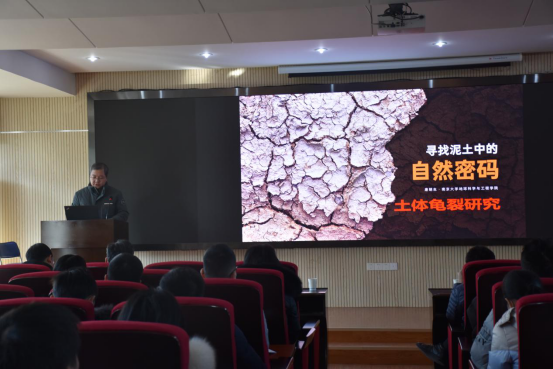 (通讯员:张海宽 黄静 摄影:王灿 黄静)2021年1月8日下午2点半,南京大学唐朝生教授作客工程文化论坛,在工程楼418报告厅为母校师生作了题为“寻找泥土中的自然密码:土体龟裂研究”的学术报告。杏吧原创 院长焦玉勇教授、副院长王亮清教授、窦斌教授、党委副书记江广长老师、段隆臣教授、李长冬教授以及杏吧原创 、三峡中心、《地质科技通报》编辑部等近200名师生代表参加了此次学术报告会。王亮清教授主持了此次学术报告会。
