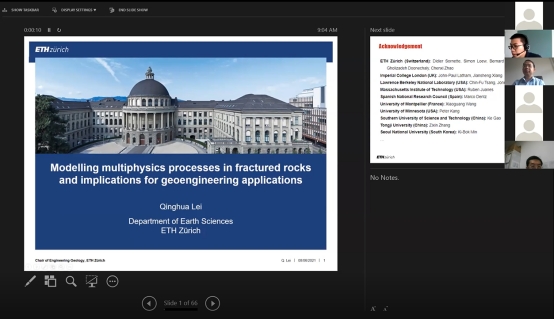 在提问环节,参会师生针对裂隙对地质体多物理场响应的影响、裂隙网络建模、裂隙渗流模拟等相关内容进行了深入讨论和交流,随后李长冬教授对此次报告会进行了总结发言。