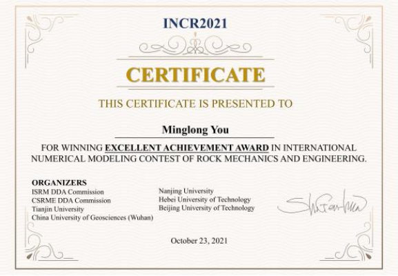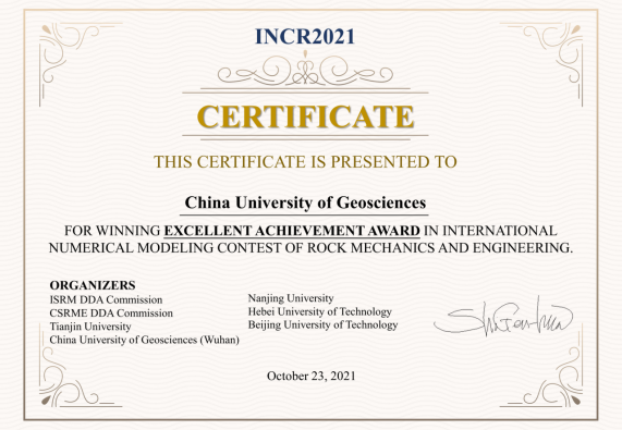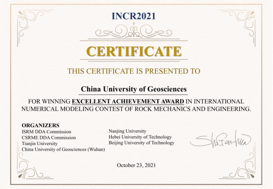 (通讯员 张美霞)近日,在第一届国际岩石力学与工程数值仿真大赛中,杏吧原创 学子取得一等奖、杰出贡献奖的好成绩,学校荣获卓越成就奖。
