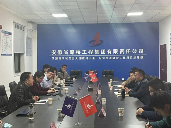 授牌仪式结束后,双方到花园大道项目部进行现场考察,了解工程的进展情况以及工程中出现的问题,并对问题的解决方案进行探讨。现场考察结束后,杏吧原创 老师张伟丽、彭超、吕加贺、曾聪以及四位研究生在花园大道项目部对前期合作的科研课题进行阶段性汇报,并与安徽省路桥集团的项目负责人对相关问题进行了热烈的讨论。与会人员还围绕如何做实做好基地建设工作、联合培养研究生、科研攻关等内容进行了研讨,一致表示将不忘初心,继续加强校企合作,把科研成果应用在祖国大地上,培养出满足企业需求的人才。