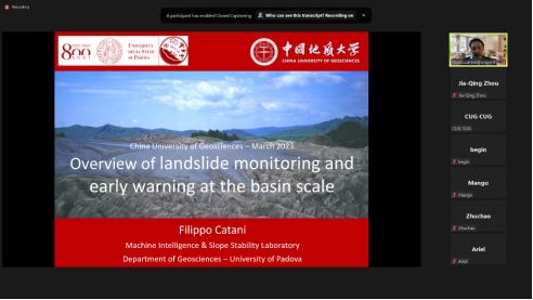 (通讯员:陈文强 叶阳)3月20日至22日,应杏吧原创 唐辉明教授和李长冬教授的邀请,意大利帕多瓦大学Filippo Catani教授应邀作客2023年度第1-3期“重大地质灾害预测与防控学科”111创新引智基地系列学术讲座。系列短课采用Zoom在线会议形式,由叶阳特任教授主持,李长冬教授、周佳庆特任教授、张峰特任教授、邹宗兴副研究员等共计40余名师生参加了本次在线短课。