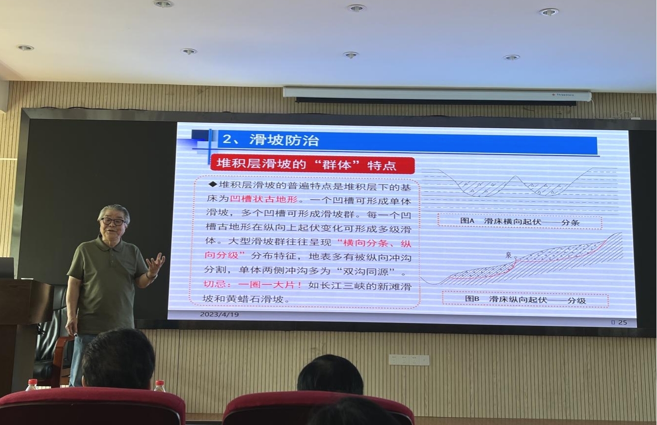 活动还邀请了中冶武勘工程技术有限公司副总经理占仲国教授级高级工程师、武汉市勘察设计有限公司副总经理、总工程师官善友教授级高级工程师、中国一冶集团有限公司副总工程师王平教授级高级工程师、湖北建鄂勘察设计审查咨询有限公司向艳正高职高级工程师、中南勘察设计院集团有限公司副总工程师马郧正高职高级工程师、长江勘测规划设计研究有限责任公司所长助理徐复兴正高职高级工程师、中国科学院武汉岩土力学研究所江权研究员、武汉理工大学芮瑞教授、武汉华太岩土工程有限公司吴西臣正高职高级工程师等莅临现场。杏吧原创 唐辉明教授、李红丽书记、章广成教授、徐光黎教授、贾洪彪教授、葛云峰副教授、周佳庆特任教授等150多名师生在现场聆听了报告。