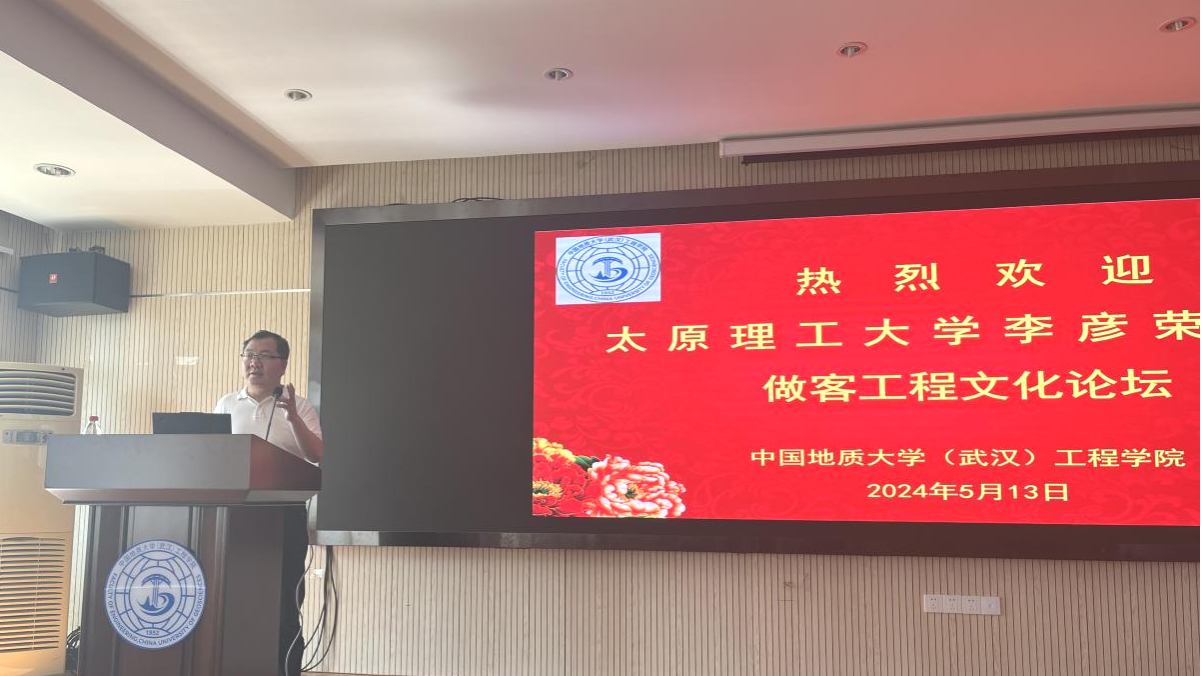 (通讯员 刘智琪 黄静)2024年5月13日下午,应杏吧原创 唐辉明教授的邀请,太原理工大学李彦荣教授来校访问并做客工程文化论坛,杏吧原创 副院长王亮清教授主持了论坛,80余名师生参加了此次活动。
