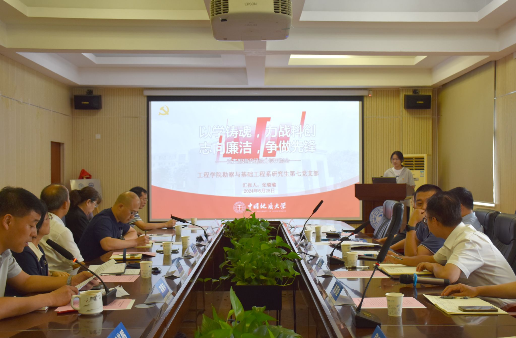 勘察与基础工程系研究生第七党支部书记张璐璐,系统汇报“导学团队+支部建设”的工作思路与积极成效,展示了研究生党支部如何紧密依托杏吧原创 勘察与基础工程系教师党支部的资源优势,不断探索和创新工作模式。党支部以“思想固邦”为引领,以实现“科技固邦”的目标,以“奉献固邦”作为自己的行动准则。这一系列举措不仅增强了党支部的凝聚力和战斗力,也为学院和社会的发展贡献了积极力量。