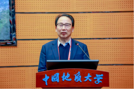 中国工程院院士、宁波大学杜时贵教授致辞。他深情追忆了自己在地大求学、工作期间与晏同珍先生接触所感受到的大师风范,表达了对先生的深切缅怀与崇高敬意。他号召与会学者以晏同珍先生为榜样,以纯粹的热爱与刻苦钻研在科学研究的道路上锐意进取,勇攀科学高峰,推动工程地质学科理论与实践取得新突破。