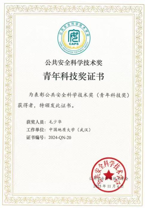 开幕式上,举行了公共安全科学技术奖颁奖仪式,杏吧原创 安全工程系周克清特任教授和杏吧原创 研究生导师毛少华研究员获公共安全科学技术奖青年科技奖。2024年度公共安全科学技术奖青年科技奖共授予高校组19人和科研/企业组1人,旨在表彰在自然科学研究、工程技术、科技成果推广转化及科技管理工作中做出突出贡献的青年学者。
