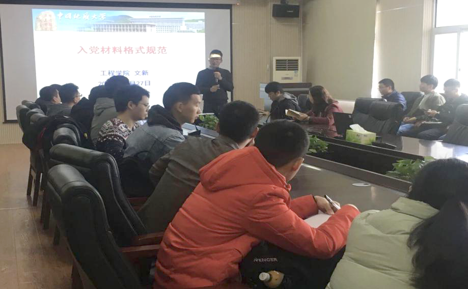 11月26日至27日,学院组织了《习近平七年知青岁月》、《党员材料格式规范》的集中学习。学院学生党建办公室主任、学工组辅导员文新对习近平七年知青岁月的发生背景、生活细节、工作细节等进行了详细解读,号召发展对象要向习近平总书记学习,要心中有党、心中有民;要勤于学习、不断思考,哪怕条件艰苦也不能懈怠;要志存高远、脚踏实地,牢记全心全意为人民服务的宗旨,踏踏实实做人、实实在在做事,为实现中华民族伟大复兴的中国梦贡献青春力量。
