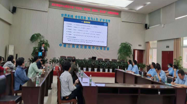 中建三局武汉中心项目党支部书记李江华介绍了武汉绿地中心项目的相关信息,并且展示项目的五个关键施工技术的视频,全面介绍了中建三局在超高层建筑施工中的最新技术。最后,土木工程与力学系党支部与会党员一起参观了在建的武汉第一高楼——武汉绿地中心,并与项目施工技术人员进行了专业技术交流。