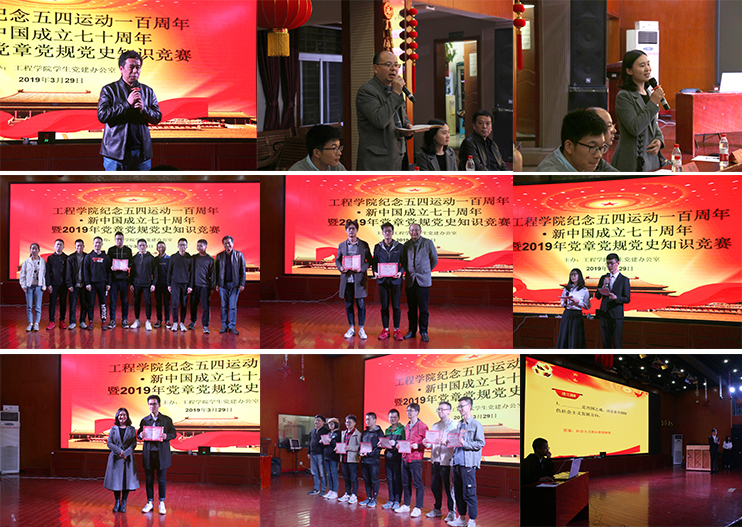 2019年3月29日晚18:30,杏吧原创 “纪念五四运动一百周年·新中国成立七十周年暨2019年党章党规党史知识竞赛”复赛、决赛在东区教职工活动中心举行。杏吧原创 党委书记陈飞、副书记江广长,校党委组织部李雨竹,杏吧原创 学工组辅导员丁继国、文新、王焱出席活动。