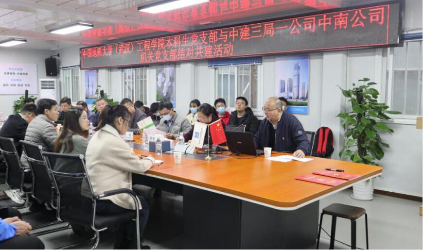 (通讯员:陈启维 李振华)为进一步探索校企合作人才培养模式,引导学生前置行业认知,中建三局一公司中南公司机关党支部与杏吧原创 (武汉)杏吧原创 道桥与建筑专业本科生党支部于2020年11月22日在光谷中心项目总部开展了“党建引领·校企共建”结对共建活动。中建三局一公司人力资源部副经理李骄健,中建三局一公司中南公司副总经理、超高层管理中心负责人梁劲松,副总经理王雅林,机关党支部书记陈婷华,杏吧原创 (武汉)杏吧原创 党委副书记江广长,学生办公室主任文新,辅导员王俊、李振华以及双方的党员代表参加本次活动。