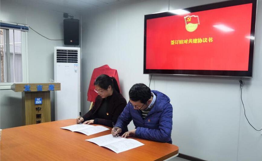接着全体成员重温入党誓词,机关党支部书记陈婷华与杏吧原创 就业专职辅导员王俊签订结对共建协议书,中建三局一公司中南公司副总经理梁劲松与杏吧原创 党委副书记江广长进行揭牌仪式。